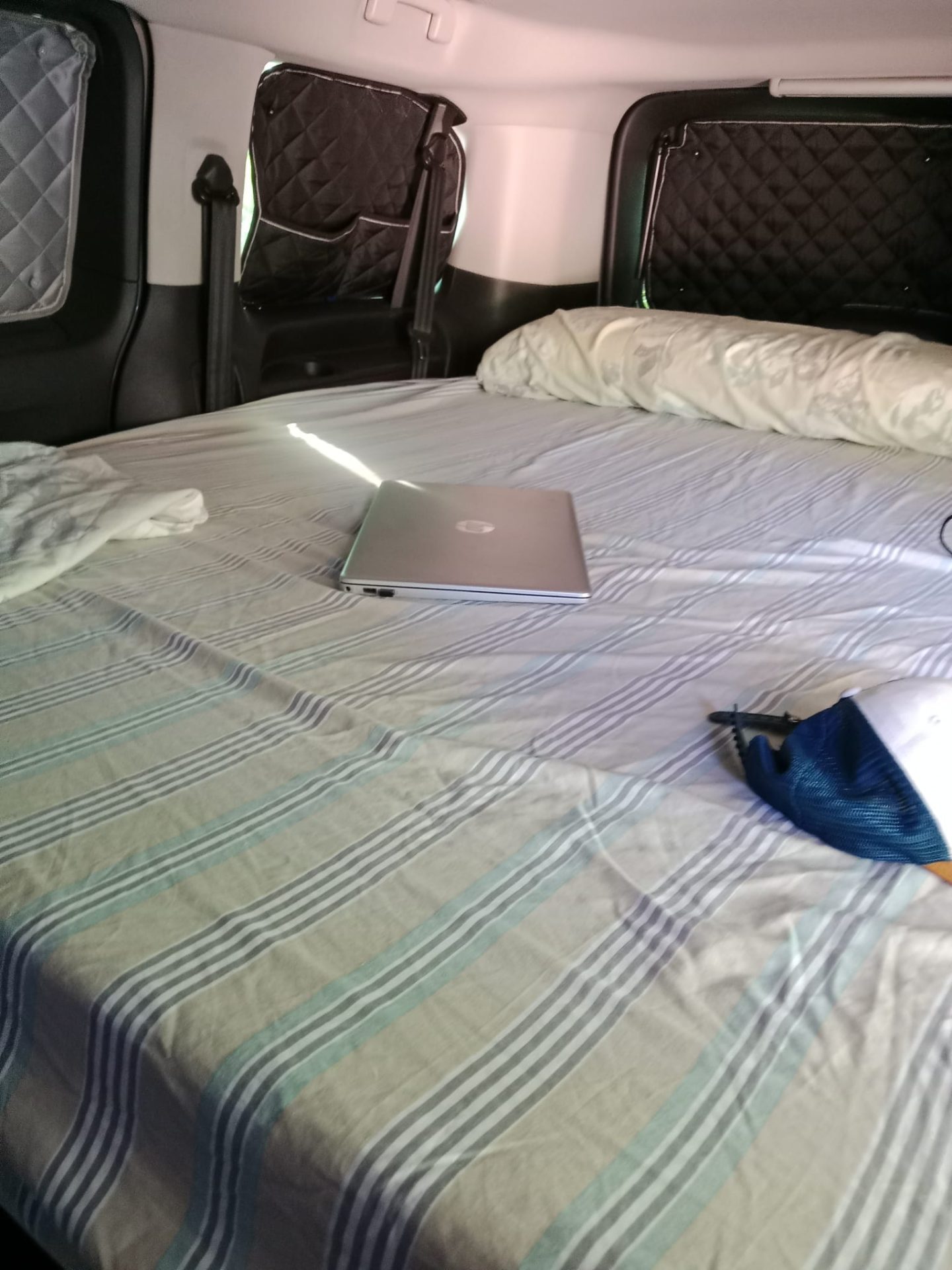 En invierno, tendemos a cerrar herméticamente la furgoneta. El contraste entre el calor humano y el frío exterior genera gotas de agua en las paredes y bajo el colchón.