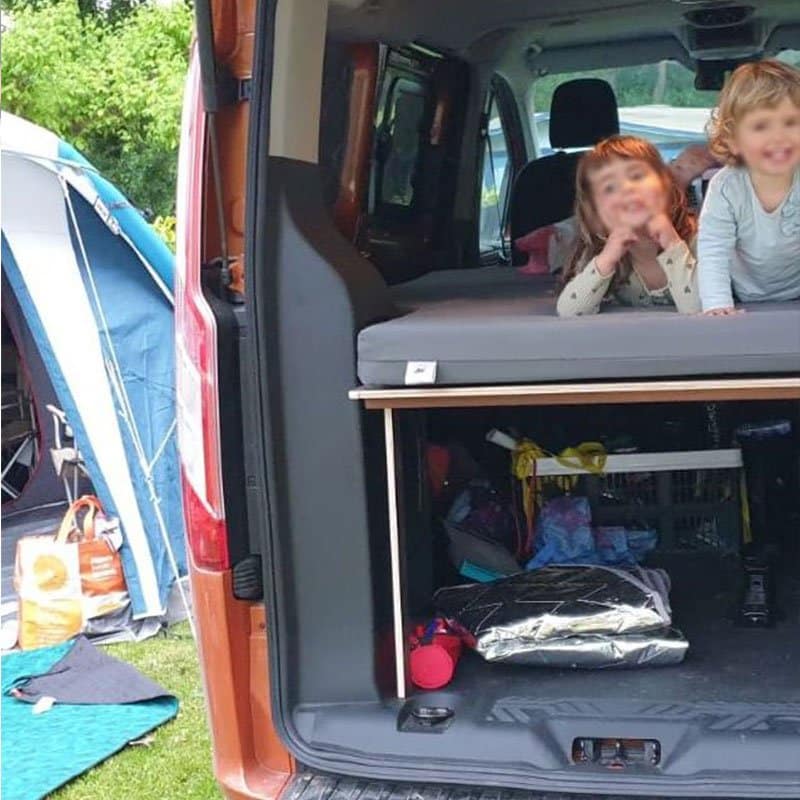 - Mattress dimensions folded in 3: Transit Custom 67 x 165 x 24 cm, Tourneo Custom 67 x 158 x 24 cm.