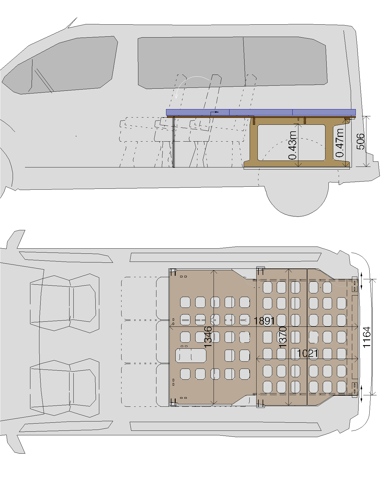 Bed specifically designed for the Sevel Nord series, so it fits perfectly to its perimeter.