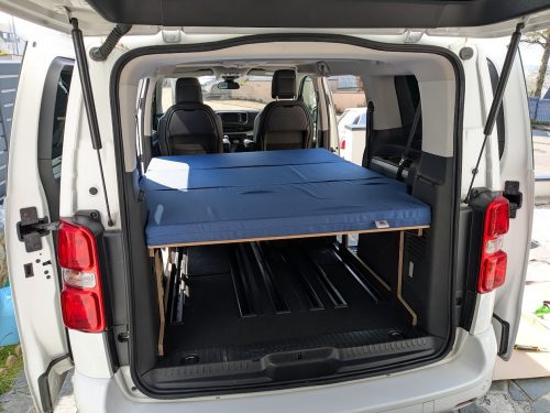 les fauteuil coullissant du spacetourer passent sans problème sous la structure qui sur un véhicule de taille xl laisse beaucoup de place entre le lit et les fauteuils avant! toujours pratique pour éventuellement se changer ou faire à manger quand il pleut