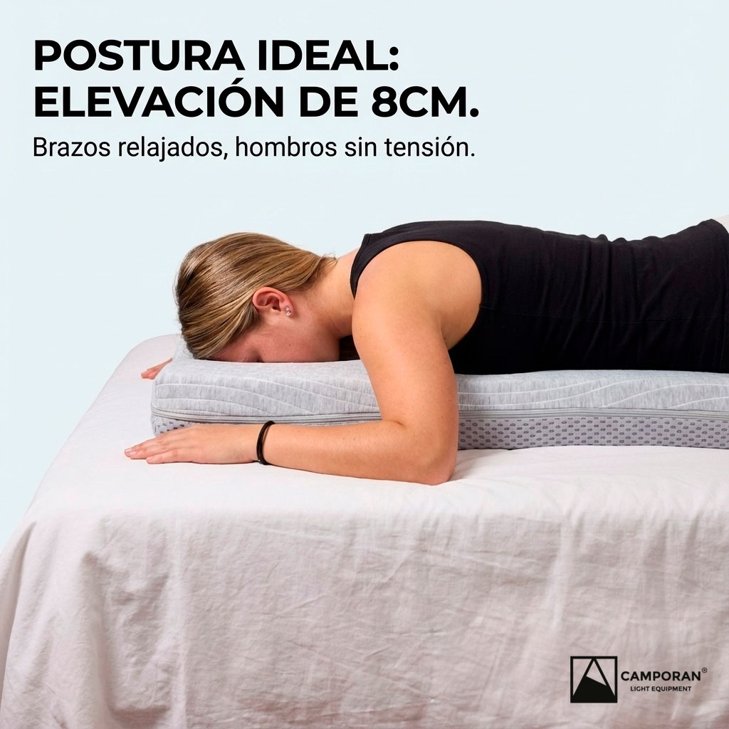 The 8cm Key: This mattress has a specific height of 8cm. When you lie on it, your trunk is elevated. What does this do? Your arms and head are aligned in a lower plane, resting relaxed on the base surface (your bed or a large sofa). This posture “deactivates” the muscular tension of the upper back and shoulders, preparing them to receive a really effective massage.