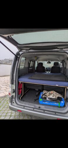 Kit d’Aménagement Nissan NV200 avec lit polyvalent conçu pour aménager ce modèle en particulier.
